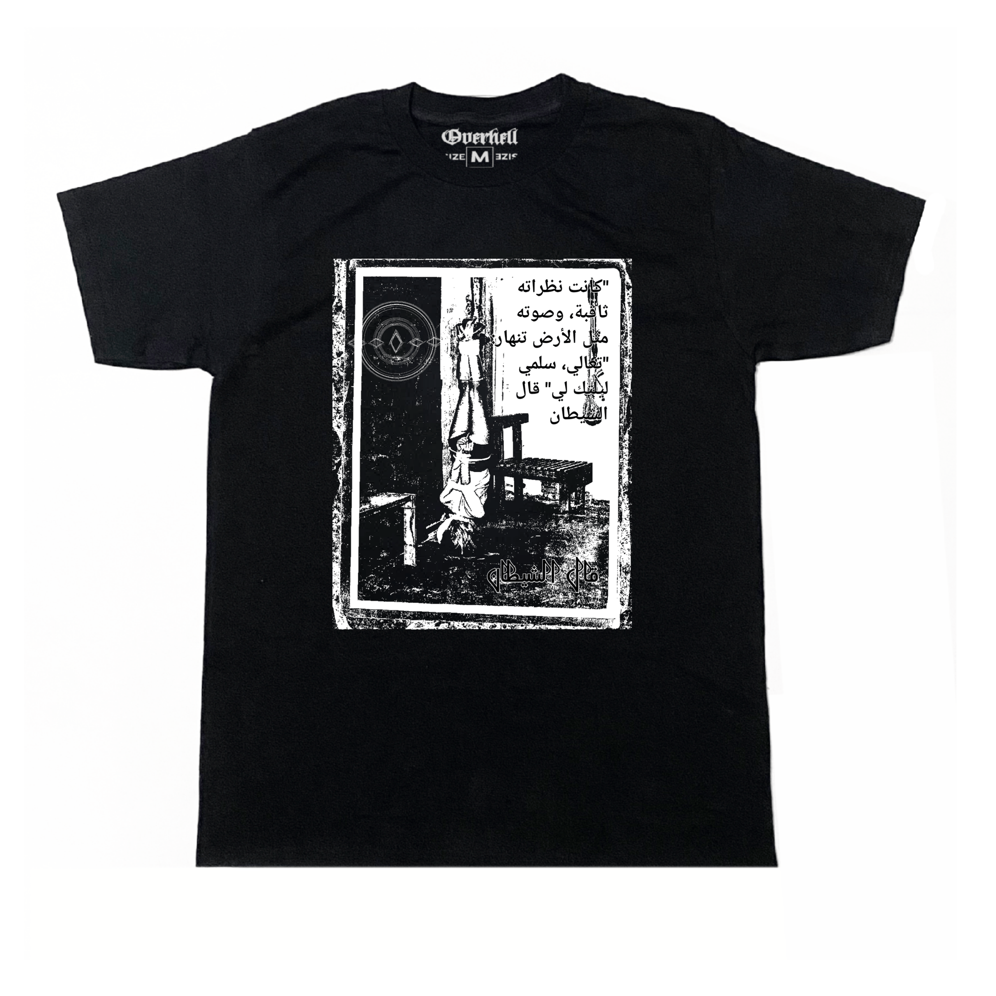 Black regular fit shortsleeve t-shirt with 180gsm (24s) cotton combed Screen printed plastisol ink on the graphics.